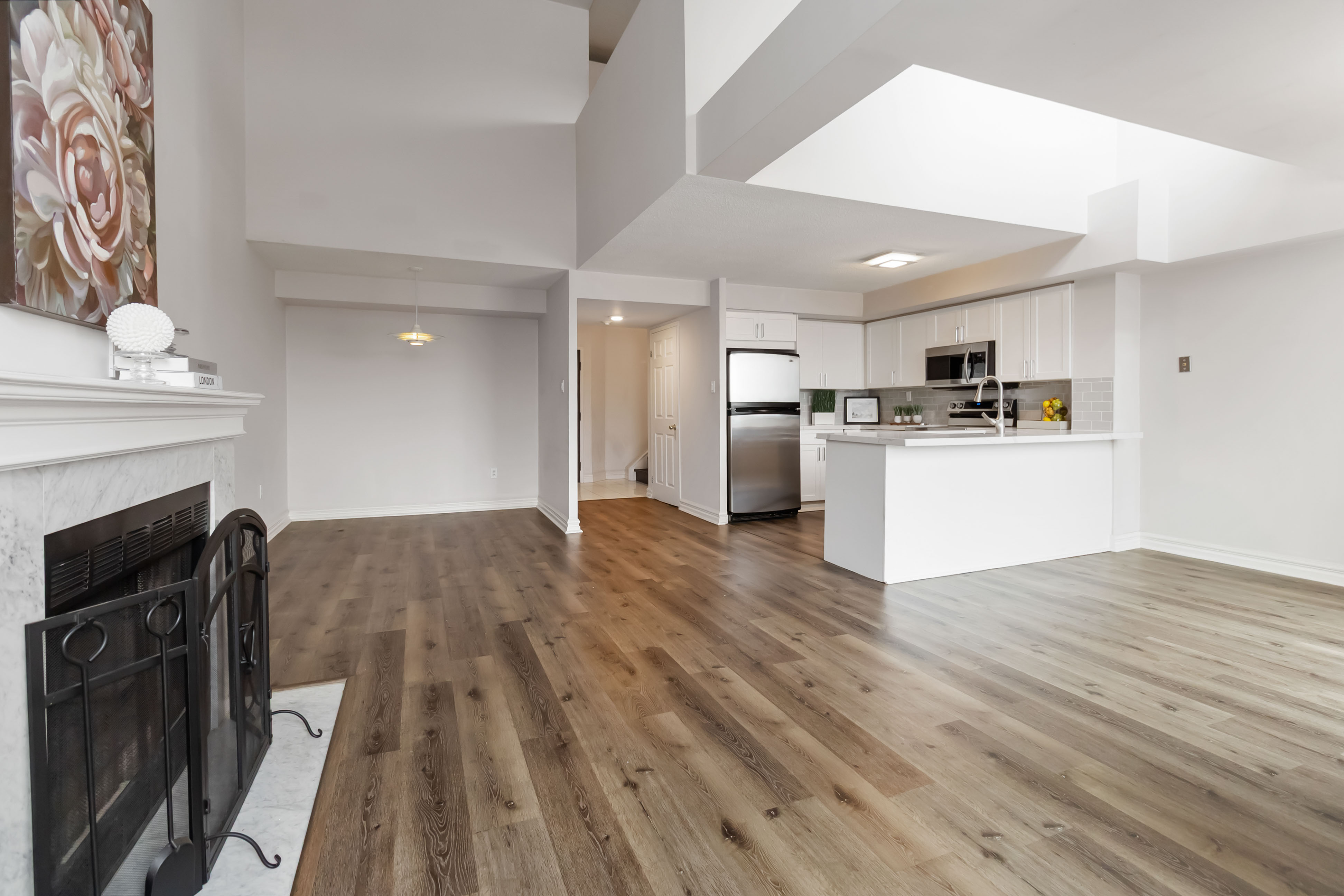 Welcome to 221 Robinson Street, Suite 403 an elegant 1-bedroom loft, 2-bathroom penthouse that perfectly blends modern comfort with downtown charm. Nestled in one of Oakville's most desirable locations, this bright and airy suite offers the ideal combination of sophistication, functionality, and walkable convenience. The open-concept main floor features soaring ceilings, large windows, and a cozy gas fireplace, creating a warm and inviting living space. The contemporary kitchen boasts sleek cabinetry and stainless steel appliances, seamlessly flowing into the dining and living areas, perfect for both entertaining and everyday living. Upstairs, the spacious loft serves as the primary bedroom, complete with a full ensuite and generous closet space. A separate den area on the main level provides flexible options for a home office, guest suite, or creative retreat, adapting easily to your lifestyle. Two stylish bathrooms and in-suite laundry add practicality and comfort to this sophisticated layout. Step outside and immerse yourself in the best of Oakville, just moments from boutique shops, fine dining, the lakefront, parks, and vibrant community amenities. Enjoy peaceful mornings on your private balcony or cozy evenings by the fire in this thoughtfully designed urban haven. Located in a quiet, boutique building with secure entry, underground parking, and a private locker, this penthouse offers effortless luxury in the heart of it all. Experience refined, low-maintenance living at 221 Robinson Street where every detail reflects style, comfort, and timeless downtown appeal.